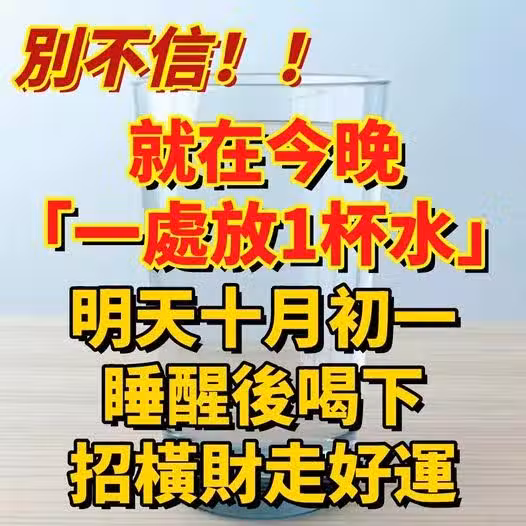 別不信!就在今晚一處放「1杯水」!明天「十月初一」睡醒後喝下,招橫財走好運!