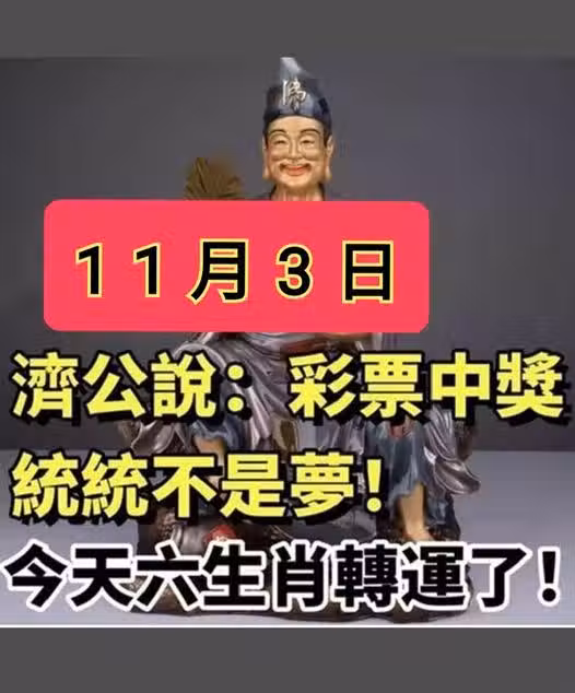 11月3日 濟公說:彩票中獎統統不是夢 ,今天六大生肖轉運了 !