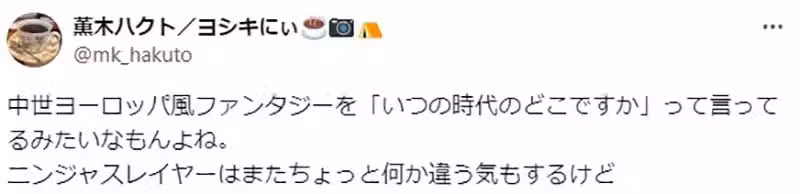 「一旦說成是基於歷史改編的故事,肯定就會冒出一堆麻煩的人。所以說成是『〇〇風奇幻故事』在創作活動上來說是正確選擇w」
