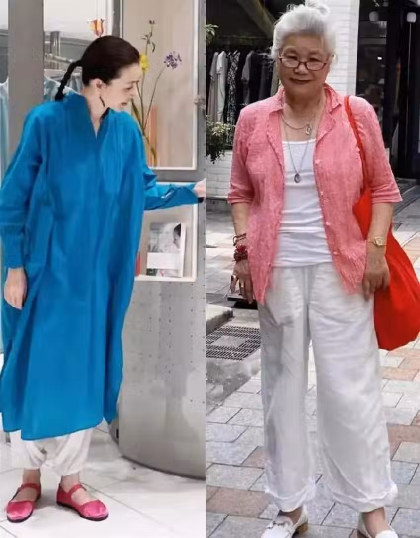 休閒的襯衫搭配高腰褲來穿同樣可以營造出「上三下七」的穿搭效果,比如這款粉色的休閒襯衫廓形寬鬆,穿著舒適又顯瘦,對中年女人的身材並不挑剔。而下半身搭配的白色高腰闊腿褲造型休閒,同時高腰的設計自帶提升腰線的效果,充分優化出中年女人的身材效果,達到穿搭顯高的理想效果。