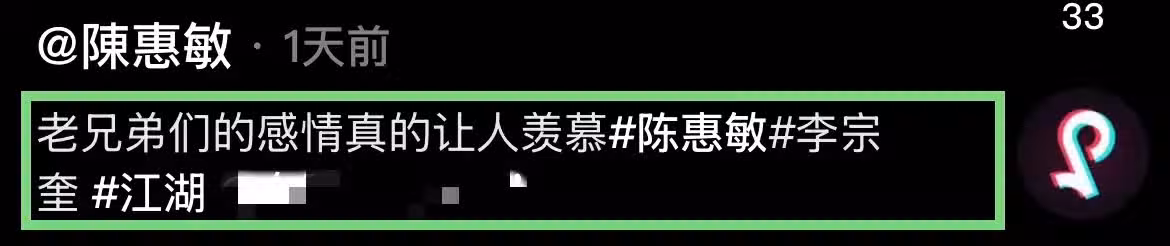 11月2號晚,陳惠敏助理於短視頻上分享了一段聚會的畫面,並在留言處感慨的說道:老兄弟們的感情真的讓人羨慕。