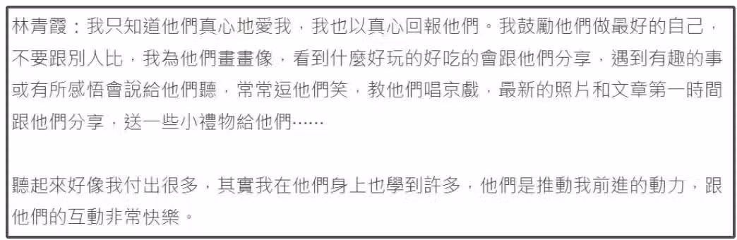 更厲害的是,林青霞竟然清晰記得每一個出鏡的粉絲,能夠喊出他們的名字,了解他們的擅長,知道這個人擅長書法、那個人心思敏感,挨個誇獎表達感謝,還不忘關心對方生意做得好不好,比起偶像和粉絲的互動,林青霞這場生日連麥更像是老友聚會。