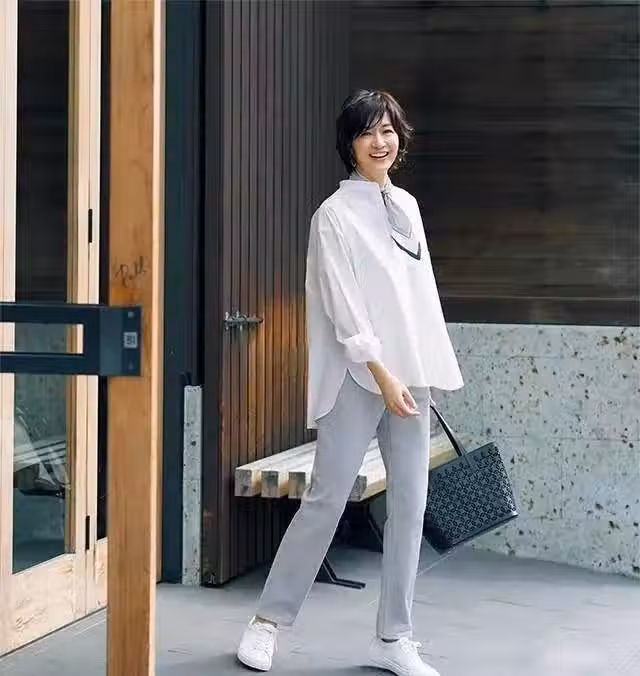 四五十歲的女人,儘量少穿黑褲子,日本主婦這樣穿,洋氣還減齡