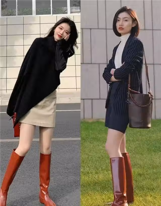 長筒靴搭配西裝或者皮衣,酷颯時髦