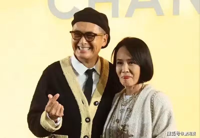 當天的周潤發盛裝打扮,戴著畫家帽跟墨鏡,一身打扮潮流又時尚,雖然已經69歲了,但狀態看起來相當不錯,旁邊的妻子陳薈蓮罕見露面,她留著幹練的短髮,身著米白色的外套,脖子上的項鍊太搶鏡了,夫妻倆一邊合影一邊跟媒體打招呼,笑容特別燦爛。
