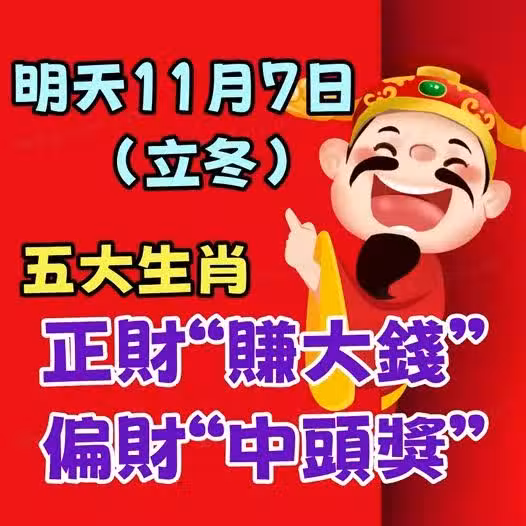 明天11月7日(立冬)五大生肖正財「賺大錢」,偏財「中頭獎」