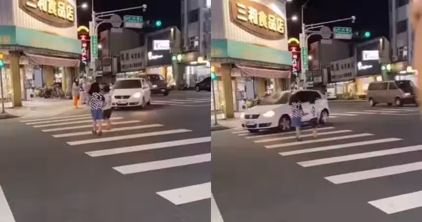 2孩童舉手過馬路 白車轉彎竟不禮讓加速通過!網氣炸:三寶教不會