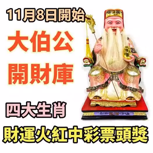 11月8日開始大伯公開財庫,四大生肖財運火紅中彩票頭獎
