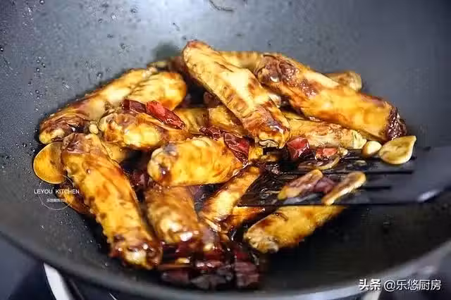 第五步:往鍋中倒入一大碗熱水,然後蓋好鍋蓋。大火燒開後轉小火燉20分鐘左右,燉到一半的時候,大家可以嘗一下湯汁的鹹淡,如果覺得有些淡,就少放一點鹽。最後,關火。讓鴨翅在鍋里燜20分鐘。