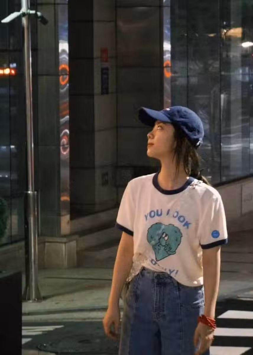 漫步在街頭的譚松韻,將都市的每個角落都變成了她的舞台。路燈下的微笑、石墩上的眺望、街邊的奔跑,每一個瞬間都被定格成了獨特的風景。這大概就是她的魅力所在,將平凡的日常點綴得如此生動有趣。
