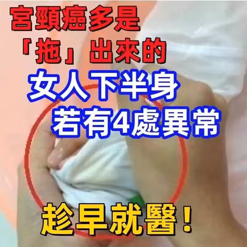 宮頸癌多是「拖」出來的,女人下半身若有4處異常,趁早就醫! 一提到宮頸癌,相信很多女性都不會陌生,它是危害女性健康的「第一殺手」,研究顯示,全球每2分鐘就有一名女性死於宮頸癌,而著名女星梅艷芳,也是因為宮頸癌離世。