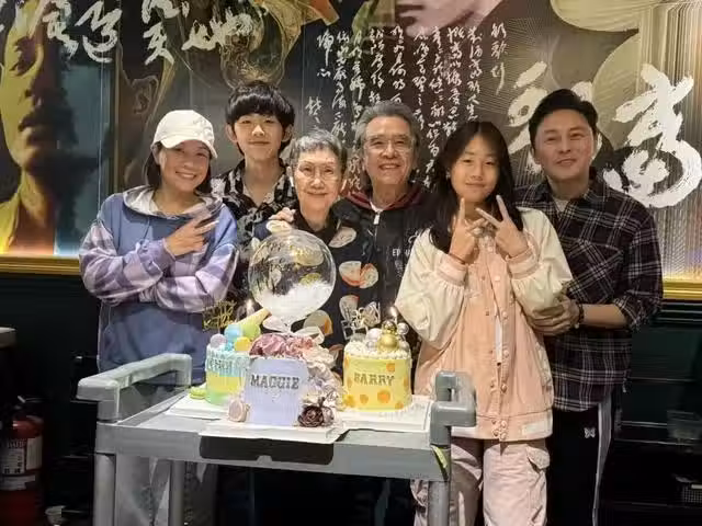 姜大衛吻賀李琳琳76歲大壽!女婿曹永廉攜16歲外孫到場,顏值驚人