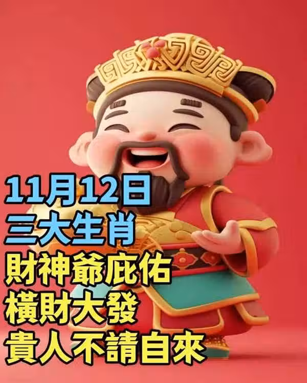 11月12日三大生肖,財神爺庇佑,橫財大發,貴人不請自來!