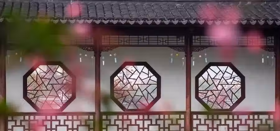 因為橫向構圖,可以讓花窗重複排列,展示出中式建築的秩序美。