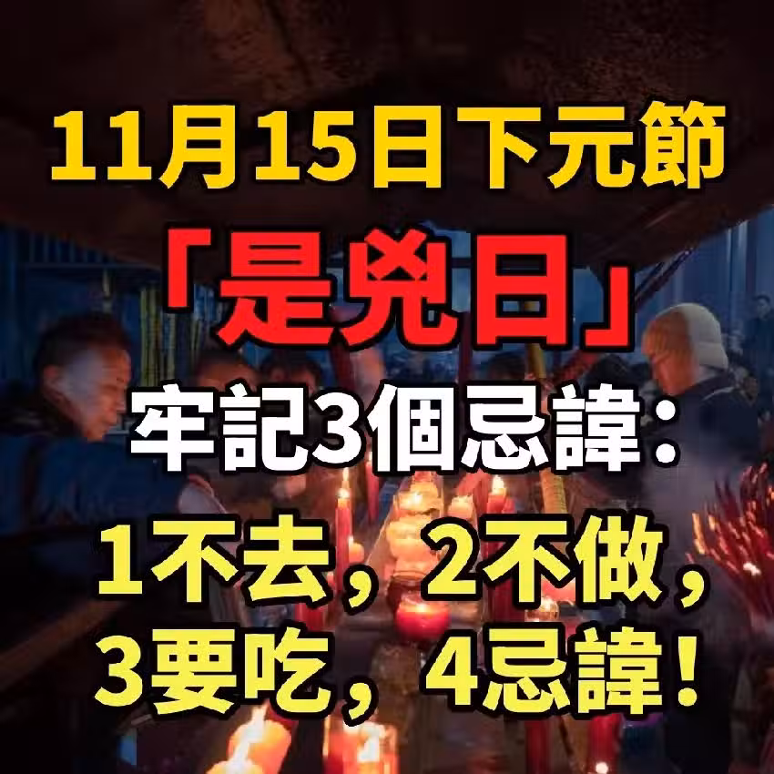 11月15日下元節是「凶日」牢記3個忌諱:1不去,2不做,3要吃,4忌諱!