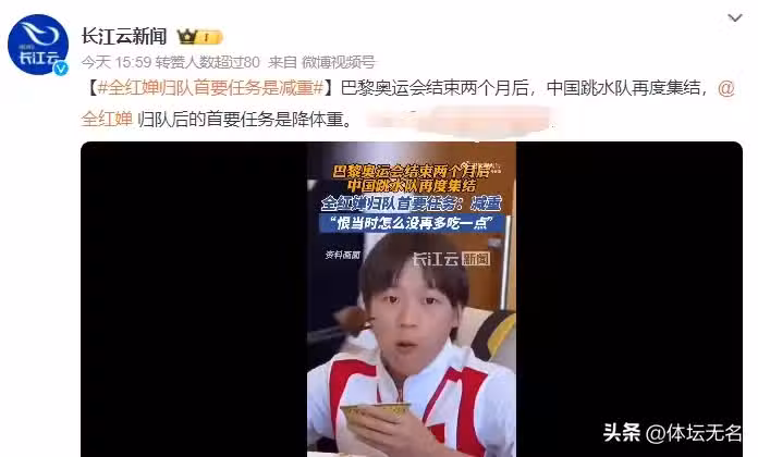 全紅嬋現在的體重相比巴黎奧運會期間,確實增加了不少,而她在採訪的時候表示,近期的計劃就是減重,而且還很幽默,「恨當時自己怎麼沒有多吃一點」。對於全紅嬋體重明顯提升,陳若琳表示全紅嬋回到巔峰狀態,可能需要半年以上,而這個冬訓周期特別重要,而且主要看全紅嬋的自覺性。從時間上來算的話,全紅嬋應該在本月開始訓練,半年之後就是2025年的5月份左右,各項大賽都已經陸續展開,所以對於全紅嬋來說,時間並不是很充分,她需要儘快恢復到最佳水準。