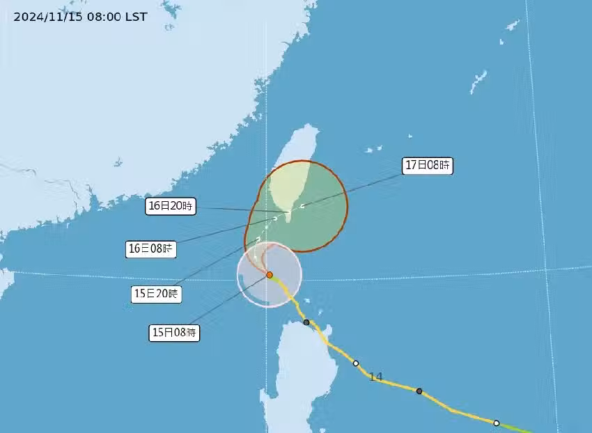 根據氣象署分析,屆時陸警可能觸及高雄、屏東、台東、恆春半島、台東,海警則為台灣海峽南部、巴士海峽、東沙島海面,以及台灣東南海面。