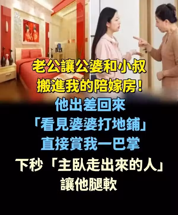老公讓公婆和小叔搬進我的陪嫁房! 他出差回來「看見婆婆打地鋪」直接賞我一巴掌,下秒「主臥走出來的人」讓他腿軟~