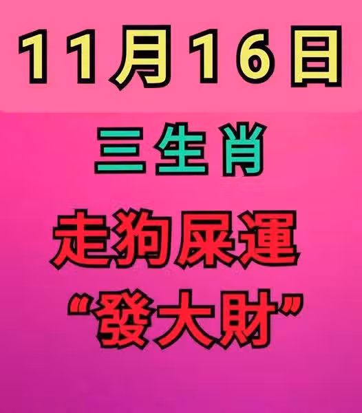 11月16日 三生肖 走 「 狗屎運 」 「發大財」!