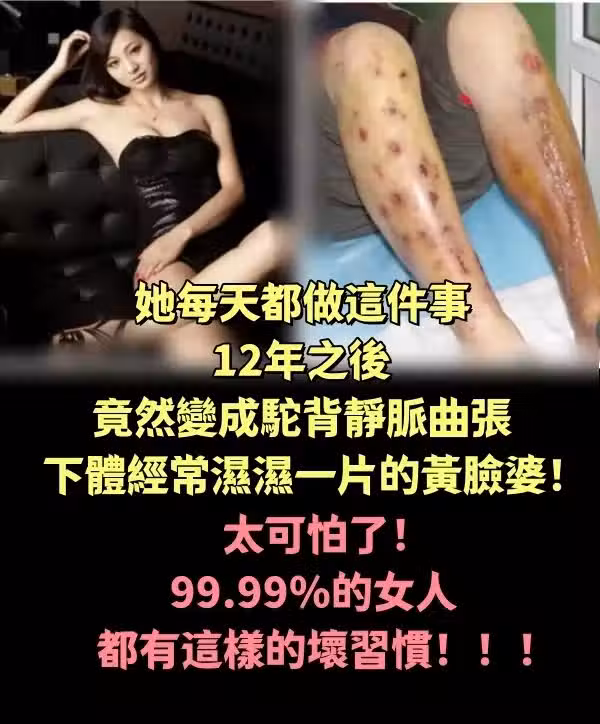 她每天都做這件事,12年之後竟然變成駝背,靜脈曲張,下.體經常濕濕一片的黃臉婆!太可怕了!99.99%的女人都有這樣的壞習慣!
