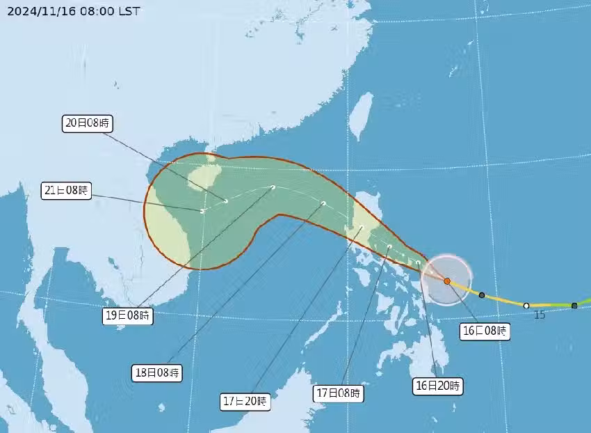 然而,已經進入11月的下半月,秋台潮似乎沒有結束的跡象,因為在菲律賓東方海面的「萬宜颱風」,在生成後持續增強,於今(16)日上午,已經形成強台等級,對台灣影響也曝光了。