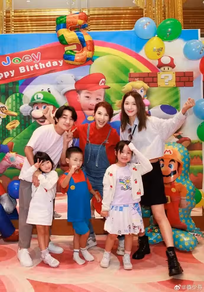 蔡少芬小兒子滿5歲,王祖藍夫婦全家到場慶賀,兩家五個娃超幸福