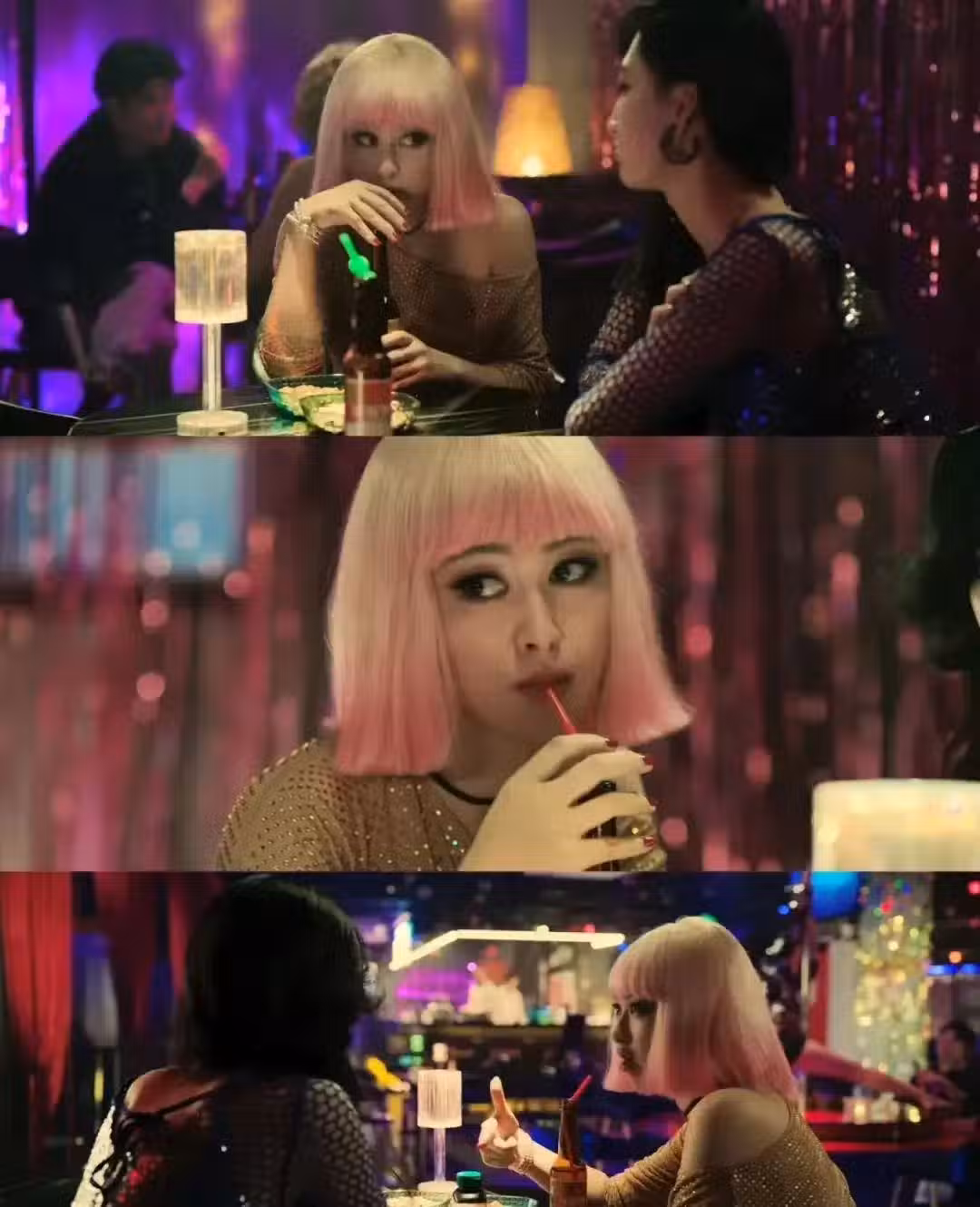 還有一些奔著女主角朱珠來看的觀眾,6集劇情過去了還沒有出場,看預告是在第8集出現,從一些畫面中也能看到,本來是嫵媚的大美人,一出來就是一頭廉價感的粉色假髮,化著大濃妝,在酒吧被人騷擾男主角上去解圍她還罵他多管閒事。看到這對她都有點不敢認,真是可惜了朱珠的顏值和韻味了。