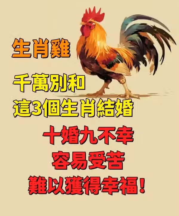 生肖雞千萬別和這3個生肖結婚,十婚九不幸,容易受苦,難以獲得幸福!