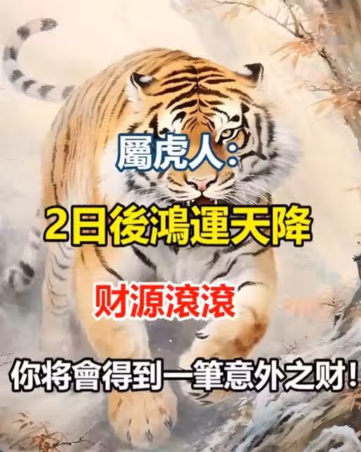 屬虎人:2日後鴻運天降,財源滾滾來,你將會得到一筆意外之財!