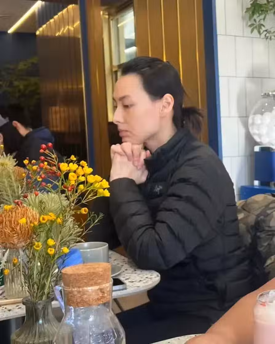 偶遇梁洛施和長子用餐,素顏皮膚白皙水嫩,15歲李長治和爸爸很像