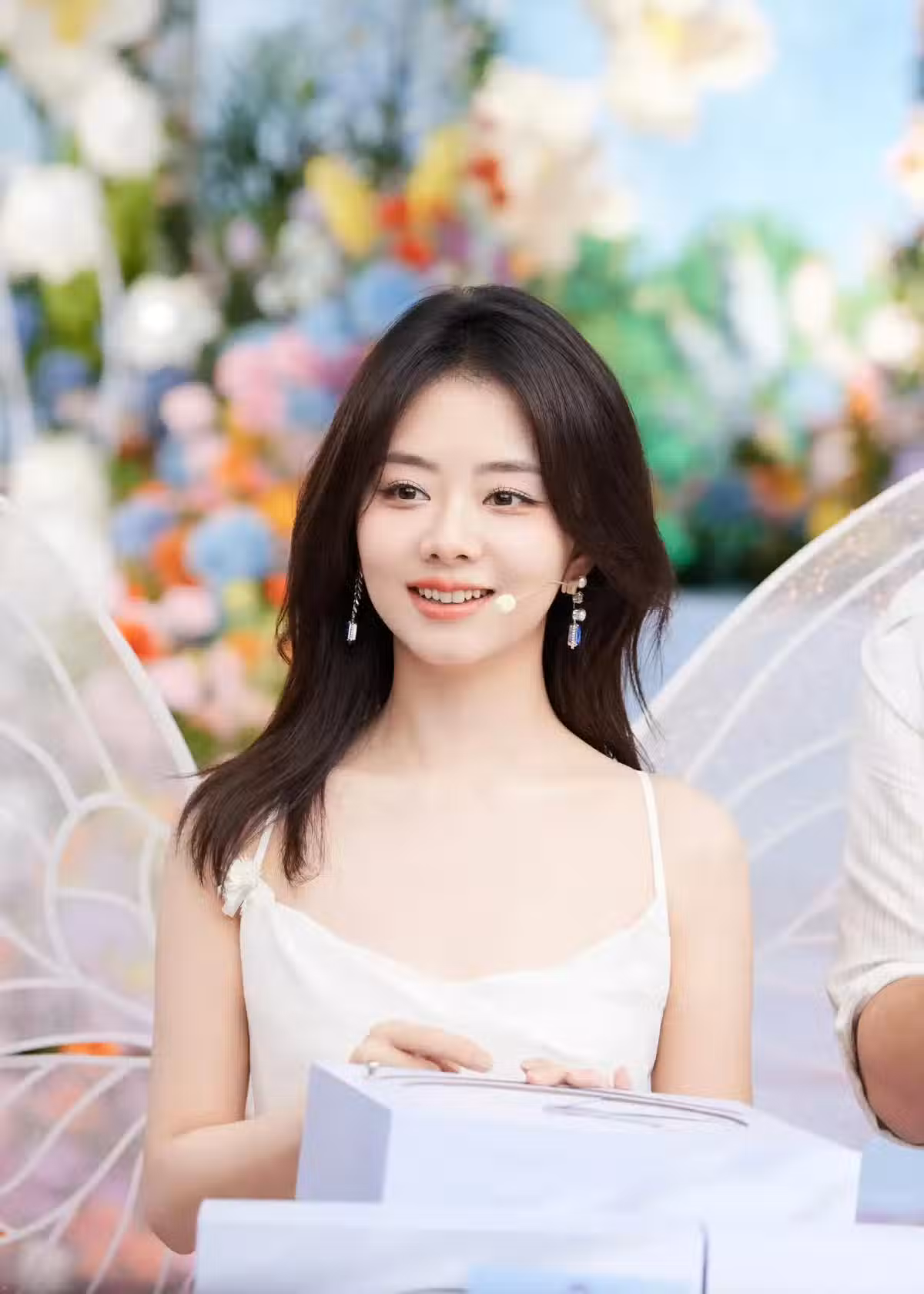 譚松韻直播造型好圈粉,穿一條白色弔帶長裙,優雅顯氣質!