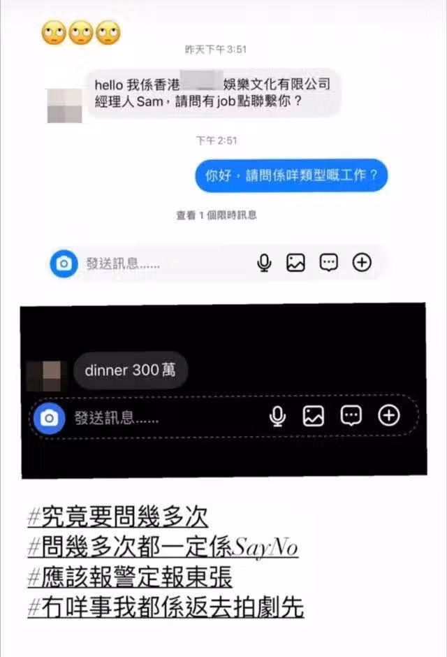 TVB小花自爆被邀飯局開價300萬,曬對話截圖認很是無奈