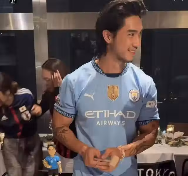 作為當天的主角,胡智同也是引發了不少熱議。只見他穿著曼城球隊的服裝,站在人群中非常打眼。