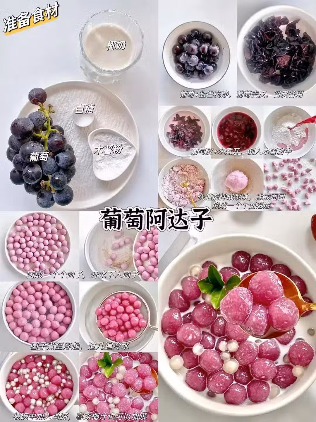食材:葡萄,白糖椰奶,木薯粉