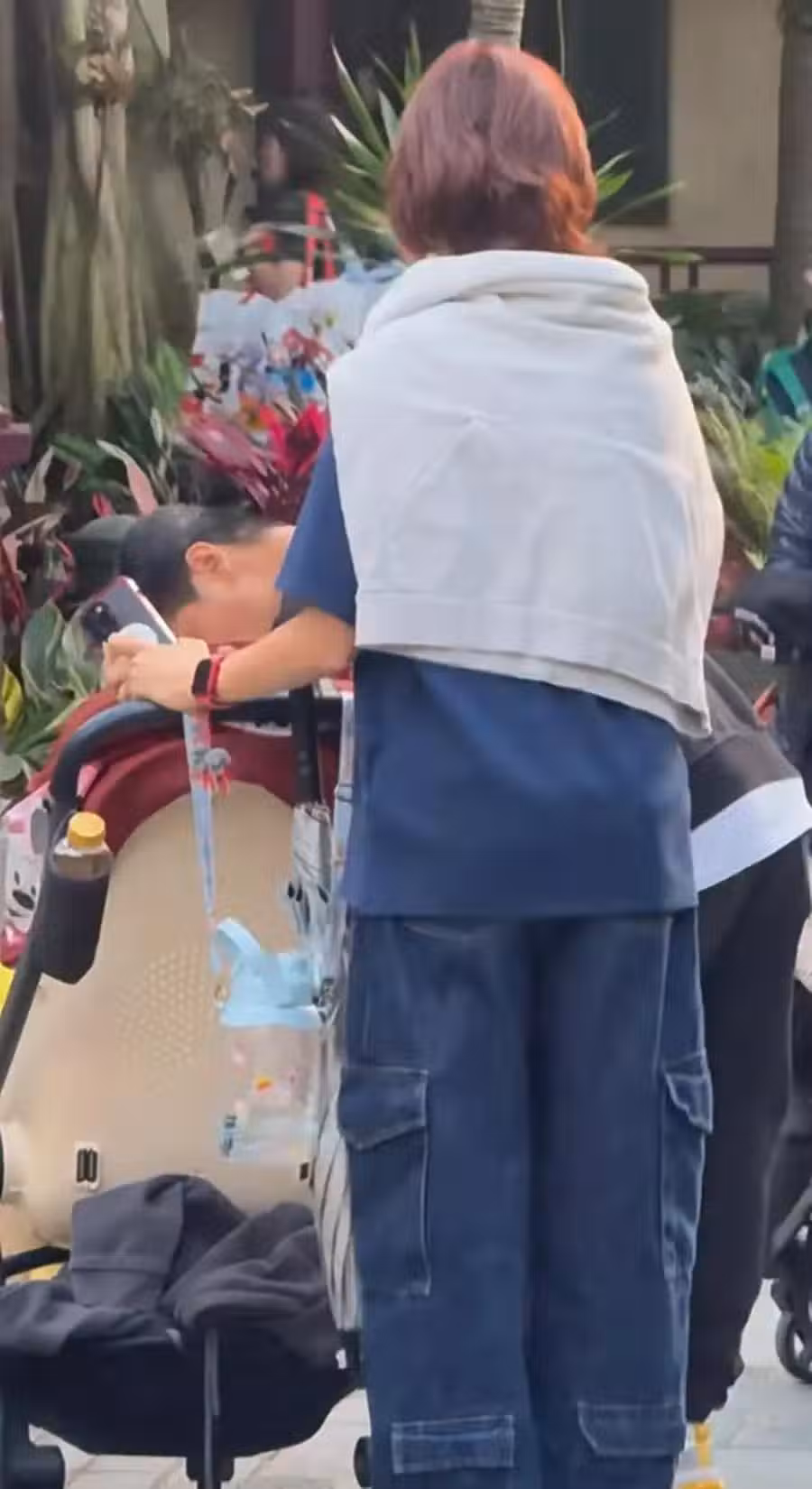 據悉,蔡少芬張晉是帶著5歲三胎兒子逛迪士尼,擔心兒子累到的他們還特意推了車子,這樣魚蛋玩累了可以坐在車上休息,夫妻倆能輕鬆不少。