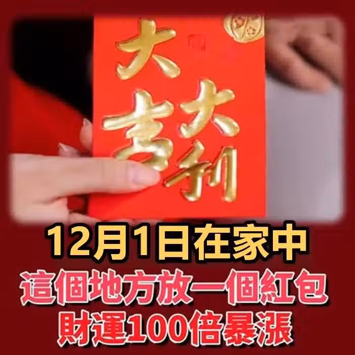 風水師偷偷透露:12月1日在家中這個地方,放一個紅包,竟能讓財運100倍暴漲,好運一路旺到年底!