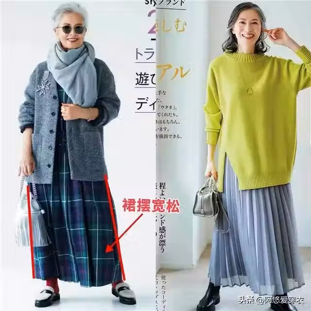 中老年女人穿裙子時,儘量不要配大衣、羽絨服,換成這幾種更洋氣