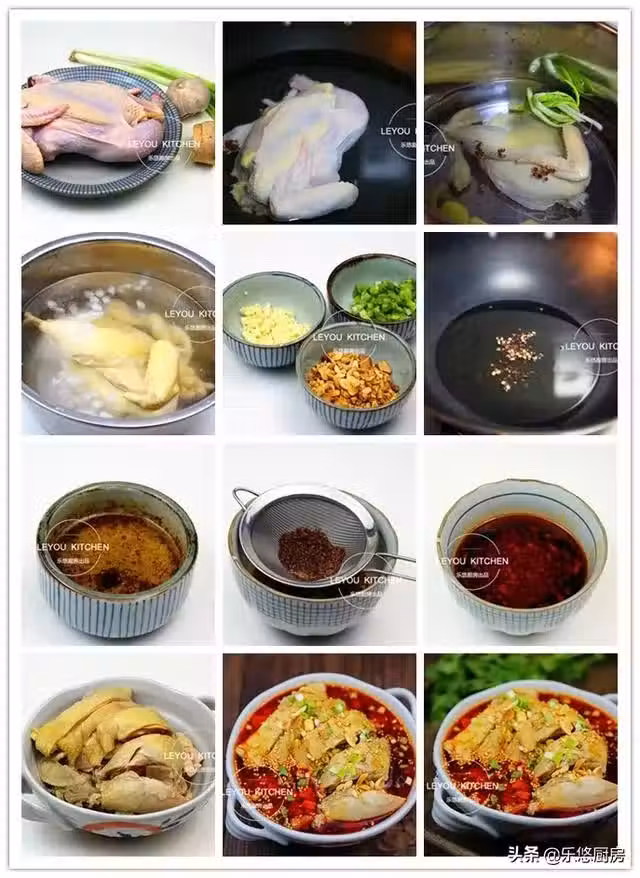 第十一步:將料汁倒到雞肉上,然後撒上花生碎、白芝麻、香蔥碎即可上桌。