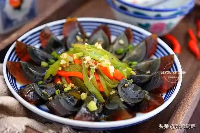 第一步:準備食材。皮蛋幾個、綠辣椒1個、紅辣椒1個、姜適量、蒜適量、香蔥適量。