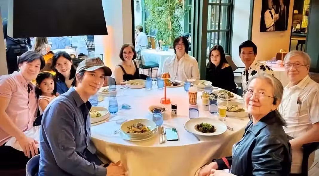 王力宏感恩節曬全家福,82歲王大中老了很多,一家人溫文爾雅