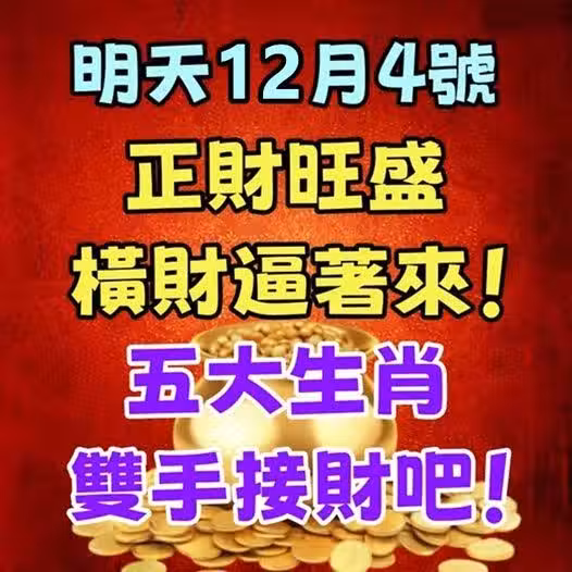 明天12月4號,正財旺盛,橫財逼著來!五大生肖雙手接財吧!
