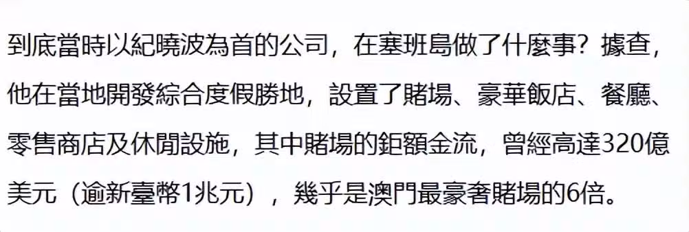 台媒報道指出,紀曉波多年前在塞班島打造賭博城,內設賭場、酒店和娛樂城,其中賭場的流水高達320億美元,摺合人民幣逾2330億,被懷疑存在洗黑錢等不法行為,美國FBI展開調查後發現紀曉波已不知去向,於是發布了通緝令。