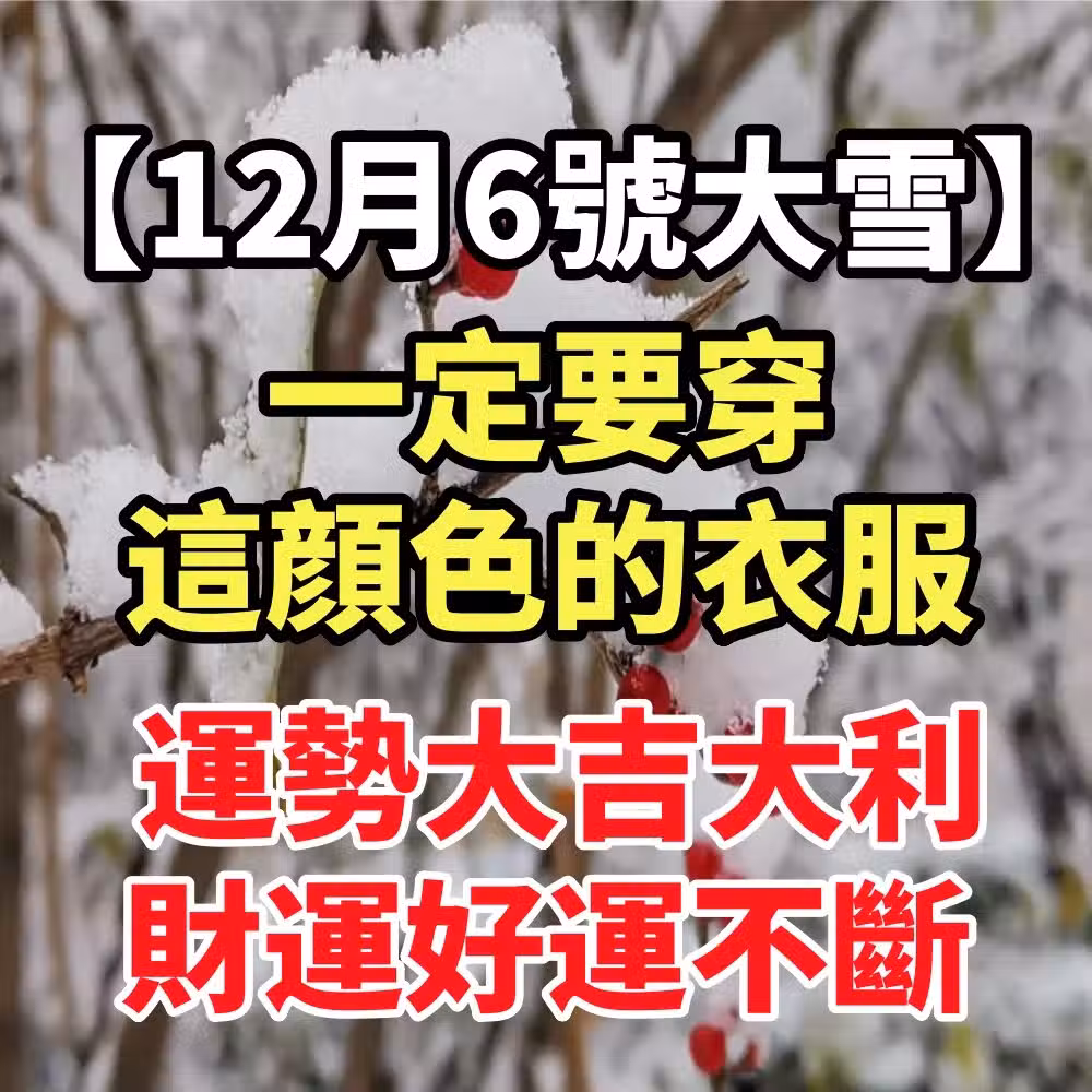 12月6號【大雪】一定要穿「這顏色的衣服」 運勢大吉大利,財運好運不斷!