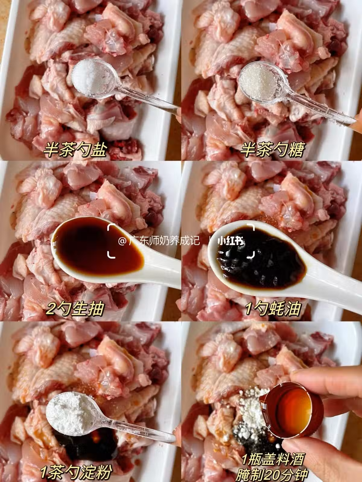 1️⃣雞肉剁成拇指大小,參考圖片腌制