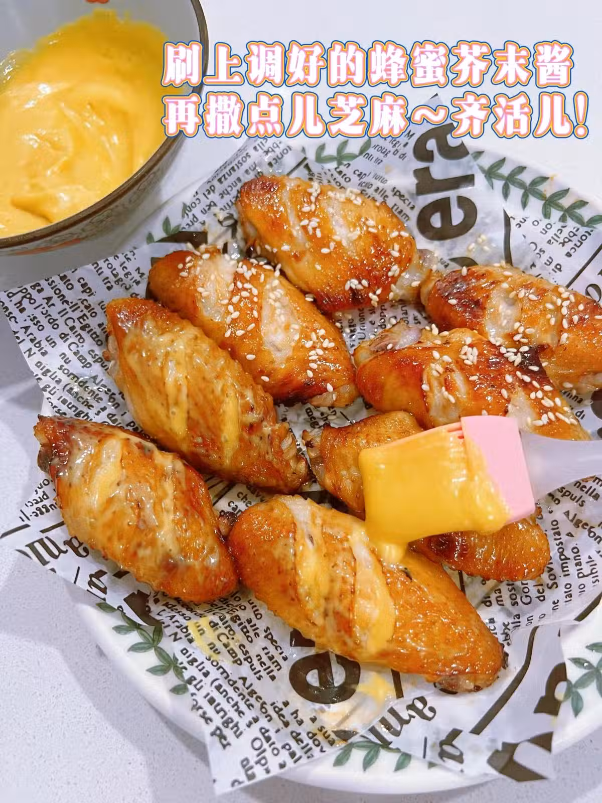 4)出鍋後刷上蜂蜜芥末醬,再撒點兒白芝麻就好了