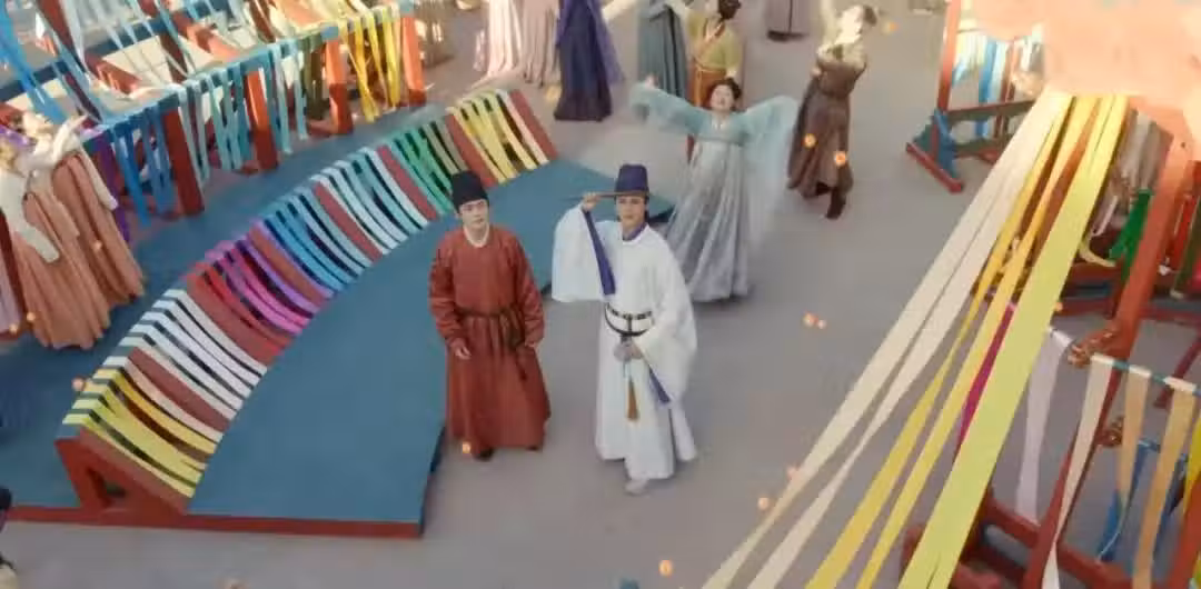 英英拿著朱顏駝絲球,在高空拋灑,漂亮的花球立刻吸引了大家的注意,他們紛紛尋找花球的源頭,找英英預定了朱顏酡絲。