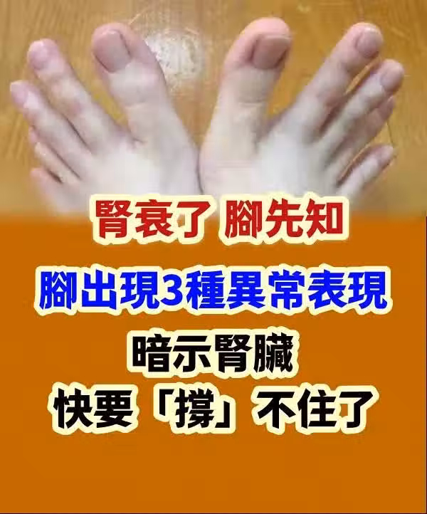 腎衰了,腳先知!腳出現3種異常表現,暗示腎臟快要「 撐 」不住了~