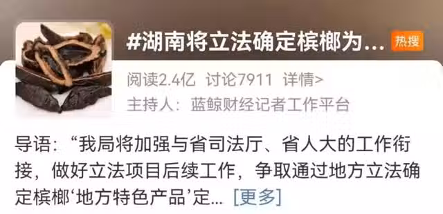 去年8月份,湖南還想要把檳榔立法定為「地方特色產品」,並為此做出了很多努力。