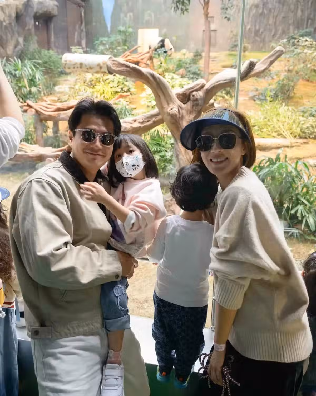 12月9日,楊怡(楊茜堯)在社交平台曬出和老公羅仲謙(羅子溢)帶著一雙兒女到海洋公園看熊貓的照片,一家四口同框畫面溫馨有愛。