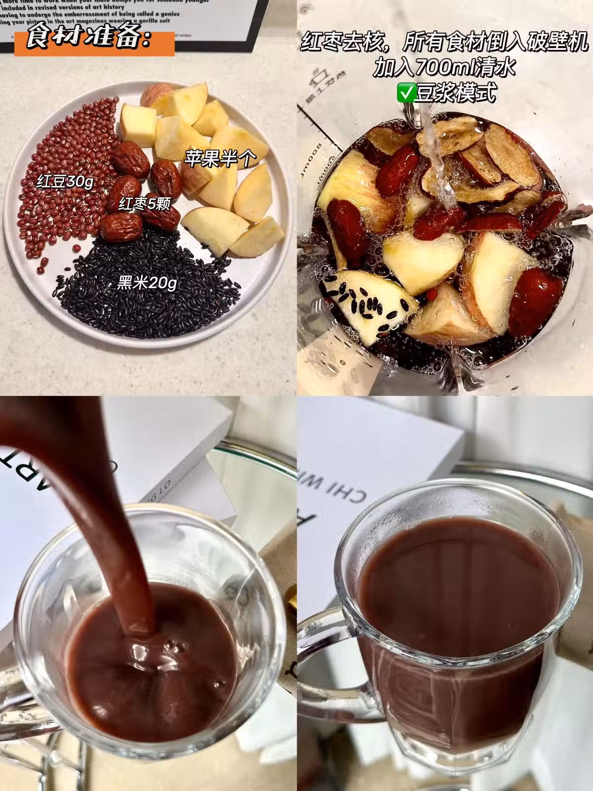 ✔️做法:紅棗去核,所有食材洗凈倒入破壁機,加入700ml清水,豆漿模式✅